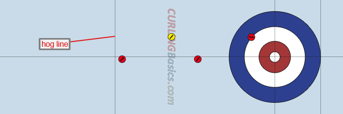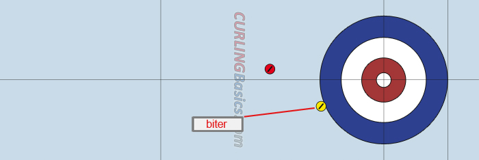Eine im Eis bzw. der rückwärtigen Bande verankerte Halterung, in die der Fuß zum Abstossen bei der Steinabgabe gestellt wird